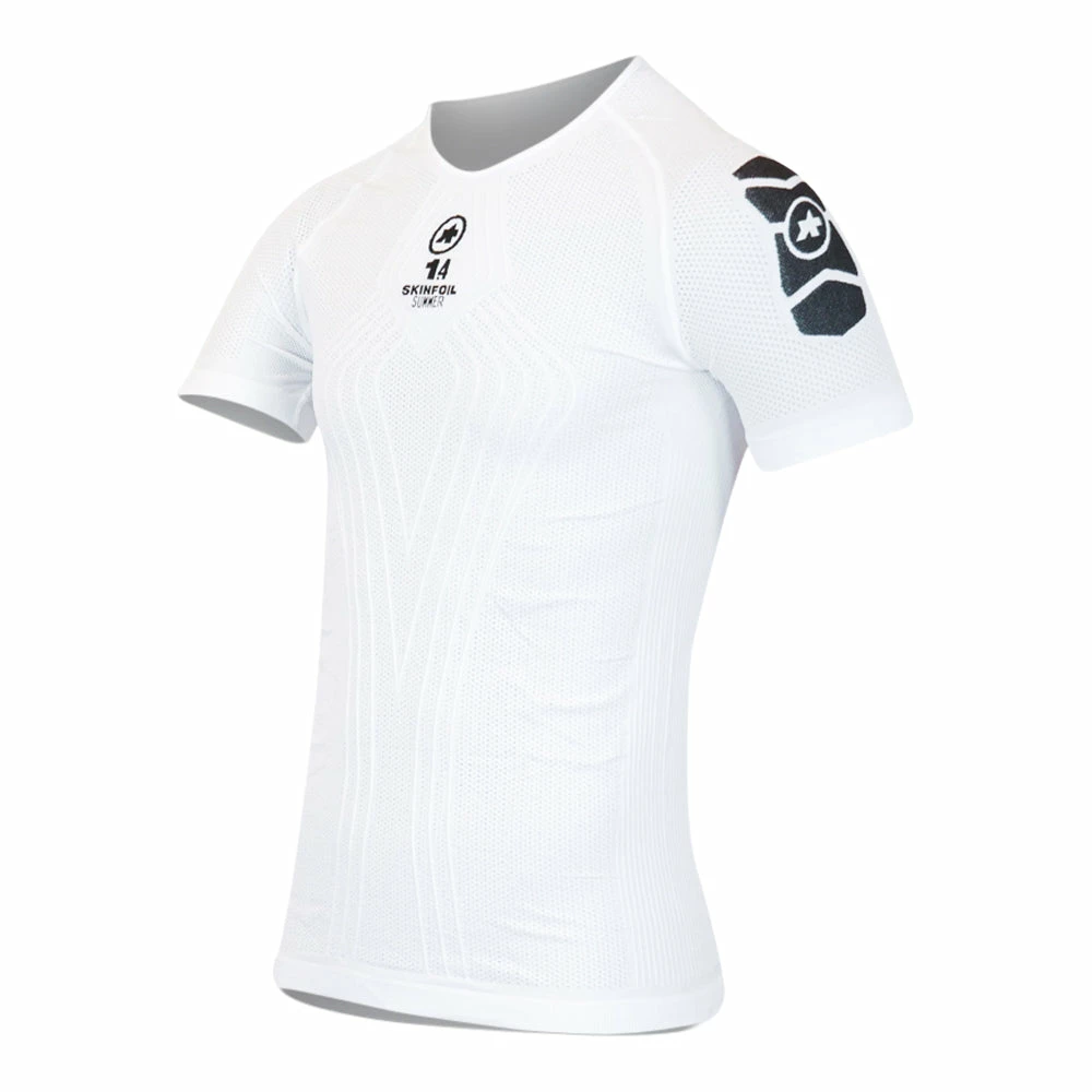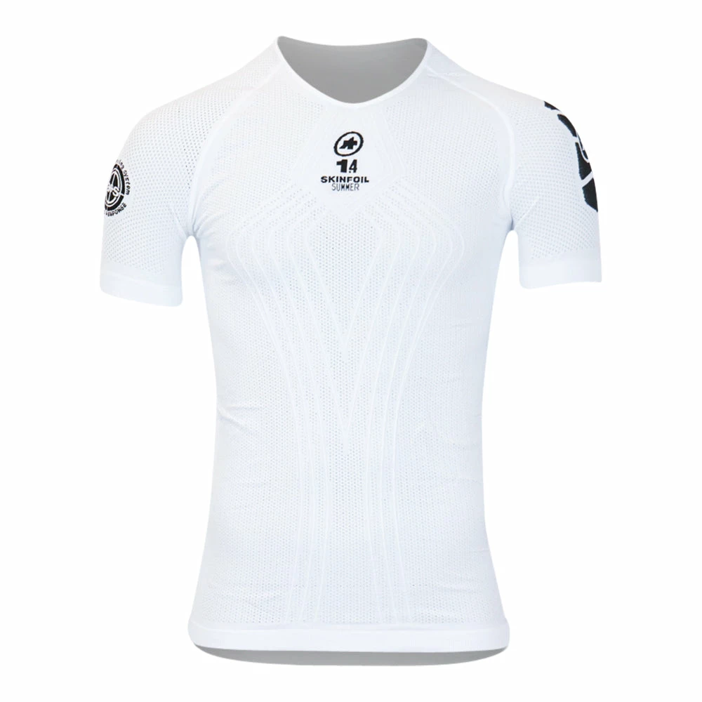 Assos Skinfoil short sleeve base layer. The Skinfoil base layer for summer rides is designed to be the ultimate first layer for this season. This breathable base layer for summer riding benefits from a thin design.
