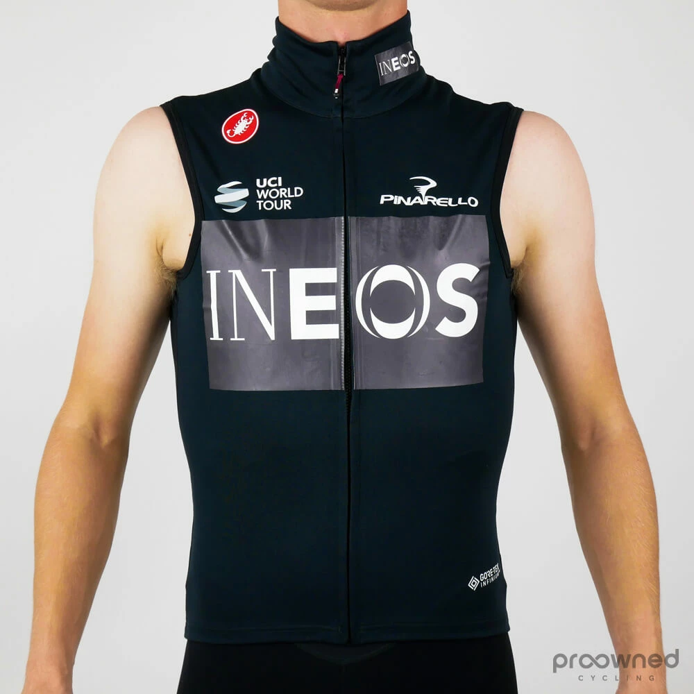 **As a part of the transition from Team Sky to Team Ineos all of their heavy-duty clothing had to be rebranded in order to accommodate the team’s new name. This is why the rebranded clothing features a Team Sky logo on the inside of the garment while the outside branding is Ineos.
