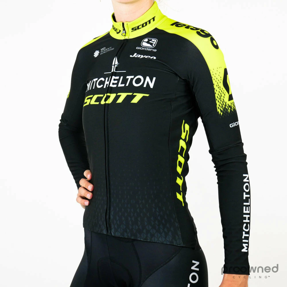 This long sleeve jersey from Giordana is the perfect companion on those spring and autumn rides where the roads are dry but the weather still chilly. The inside of the jersey is made of fleece material for both comfort and warmth. The jersey is specifically made for Team Mitchelton-Scott.