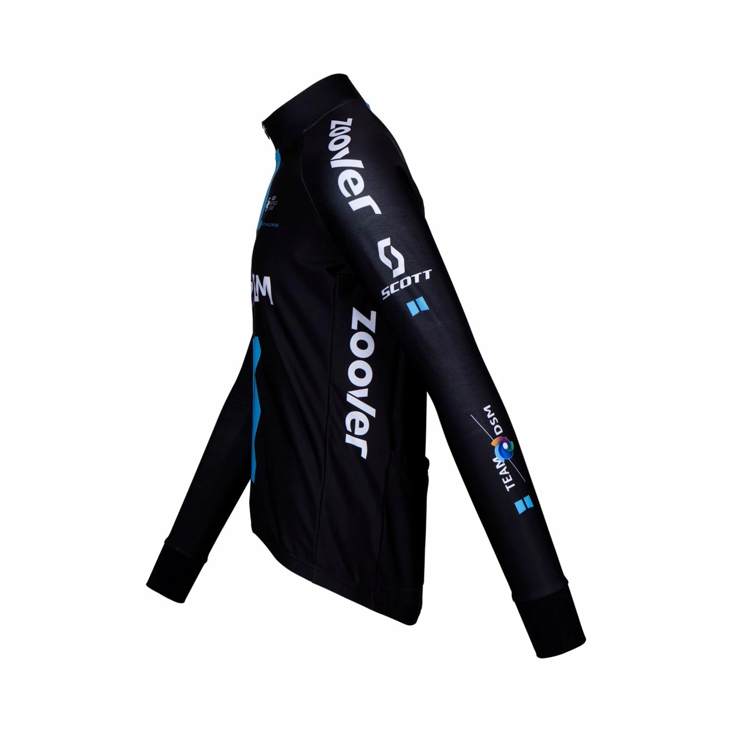 With the Team DSM long sleeve jersey Replica, you will be just as stylish on the bike as the riders of Team DSM. This long-sleeved cycling jersey is entirely made of thermal material. The insulating, ventilating, fast-drying and water-repellent material is ideal for rides in cooler conditions.