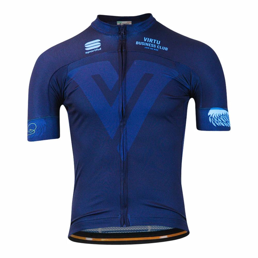 Brand new short sleeve jersey from Sportful. The jersey was originally made for the Virtu Business Club, however, the timeless, neutral design makes this jersey a good choice for any rider. The jersey is made in a tight, yet comfortable and breathable, fit. The fabric is designed to transport sweat away from the body and thus keep you dry. In addition, the jersey is equipped with three back pockets and a silicone gripper around the waist. Finally, the sleeves of this jersey are equipped with a silicone cuff, which keeps the sleeves in place at all times.
