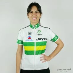 Brand new training jersey from Santini. The training jersey comes from the Australian National Team and is made for the 2012 season. Even though it is a training Jersey, the quality is still good. The jersey is made by the Italian brand Santini, which is known to provide top quality clothing for all seasons. The jersey is specially tailored for women.