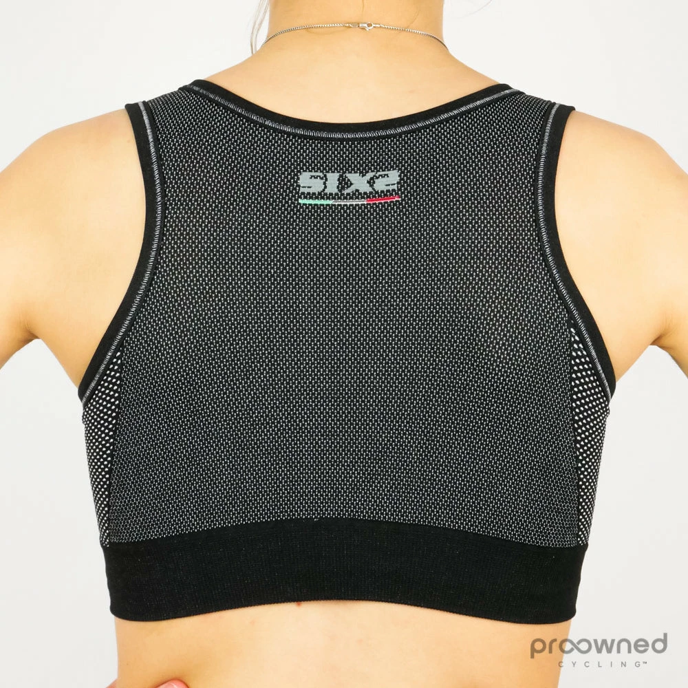 SIXS has improved and reinforced this sports bra to guarantee even more comfort and correct thermoregulation for all women athletes. The SIXS original carbon fabric technology protects your skin from excessive perspiration. This means you will no longer experience sudden colds since cold and moisture will be taken away from your skin.